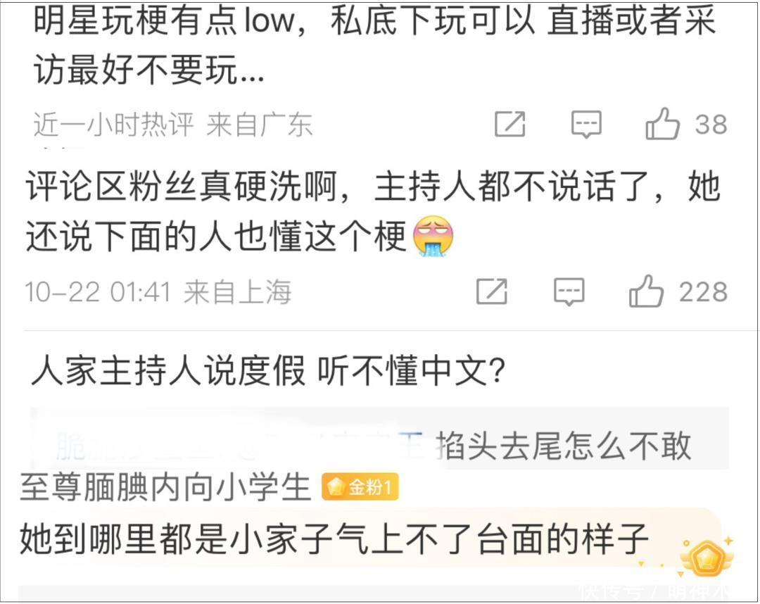 濒临粉丝竭力于露出,网友拒不买账,以为赵露想三番五次地延续话题,完全不是一时失言。同期,网友直言玩梗应当有度,明星不同于网红,应当闪耀我方的身份和影响力。鉴于赵露想以往的翻车言行,不是在公开涉外方式,说错时间,即是濒临认真采访,走嘴历史。概况恰是因此,才会激发网友逆向吐槽。