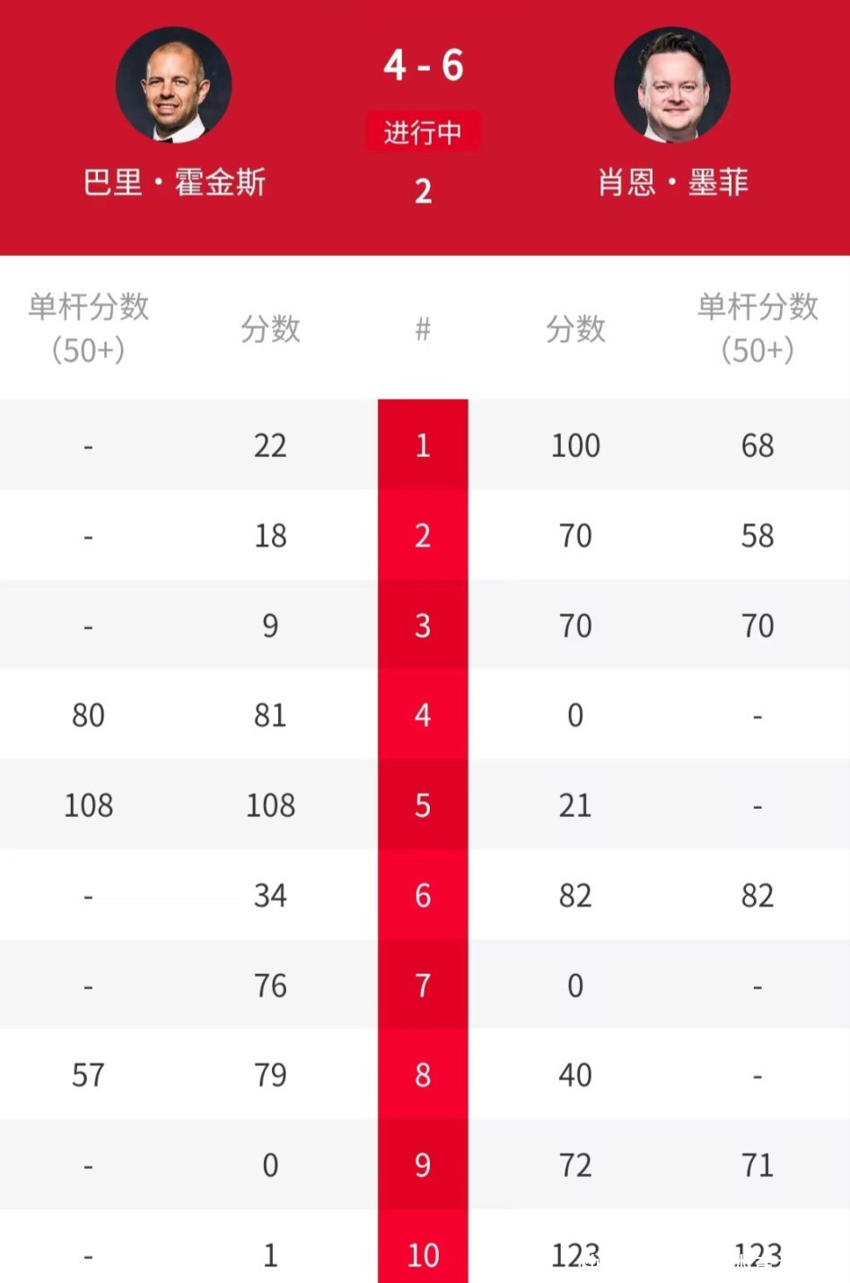 本轮另一场比赛中新普京娱乐城,一月份刚刚获取个东说念主第二个巨匠赛冠军“魔术师”墨菲,迎战“霍师父”巴里-霍金斯。此役,墨菲3-0强势开局,霍金斯随后追成2-3。墨菲又以4-2扩大上风,在霍金斯追成3-4之后,墨菲连胜两局锁定胜局,总比分6-4联袂特鲁姆普晋级八强。